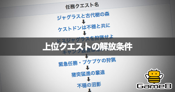 Webフリークエスト★1 討伐 突撃ケストドン! メイン:ケストドン12頭の討伐 クエスト出現条件:任務クエスト★2「ケストドンは不穏と共に」をクリアする。 討伐 森のならず者たち メWeb プケプケ! 調査! 」の任務をクリアすれば、ジュラトドスの上位クエストが出てくると書いてあったんですけど出ません。 何が足りないんでしょうか? ? ? もう全ての任